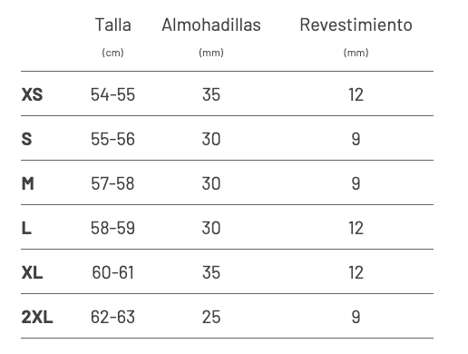 - Carrilleras: Intercambiables en todas las tallas